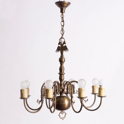 3 st taklampor sekelskifte utseende. Kupol i opalglas vit. Metall i äldres brons look. Säljes helst alla 3 i ett. Bredd ca 27cm höjd 35cm. Standard eluttag för ”äldre uttag”