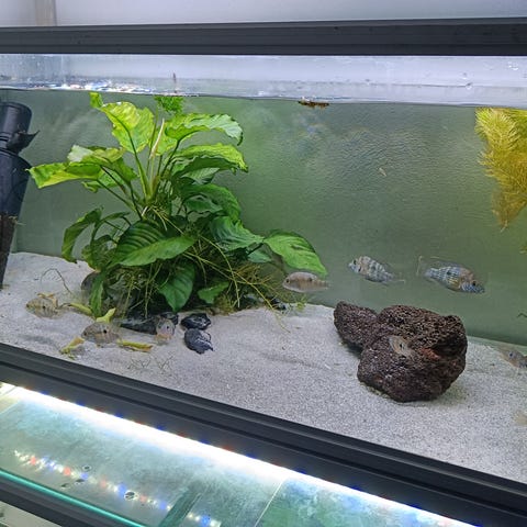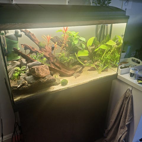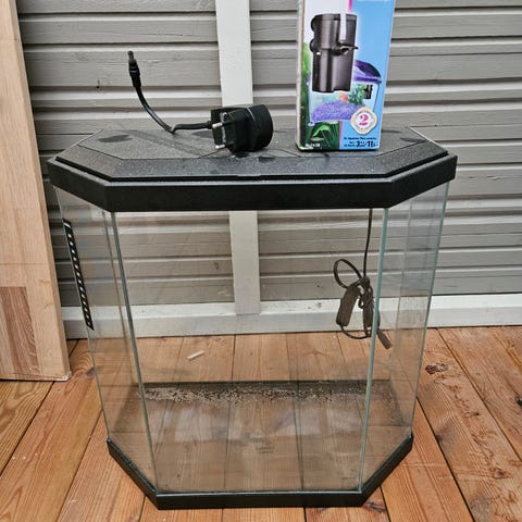 Akvarium drygt 150 liter med alla tillbehör växter, fiskar, pump, belysning mm, se bild. Bara att sätta igång och njuta i vintermörkret.
