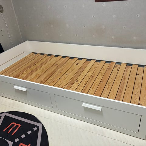 Fin säng från ikea, utdragbar med två lådor undertill.