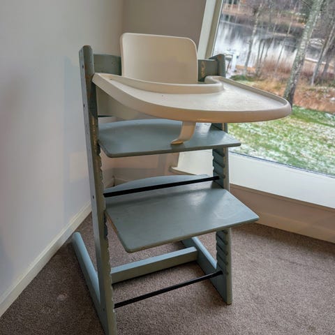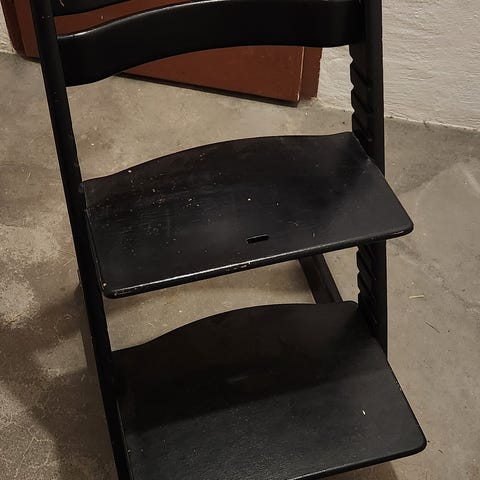 Stabil barnstol. Justerbar sitt- och fotplatta för anpassning efter barnets storlek.