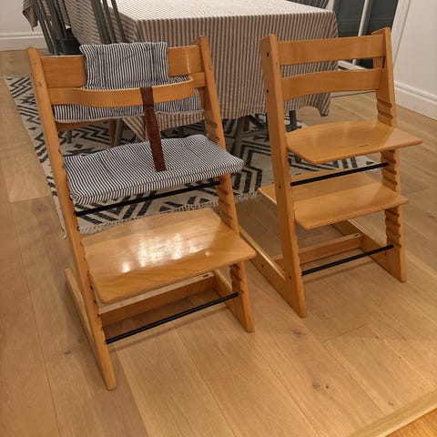 Stokke Tripp trapp Barnstolar är tillverkade i trä och utformade för barn. Stolen har justerbara sitt- och fotstöd för att anpassa sig efter barnets storlek och behov.
