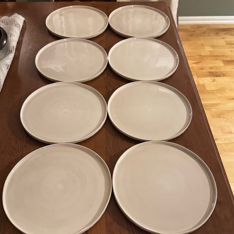 Fyra assietter i färgen ljusrosa