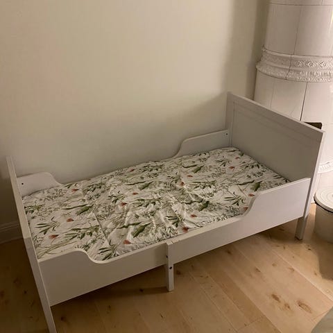 I mycket bra skick. Använd endast i några månader bara. Madrass finns i den storleken vi använt sängen.