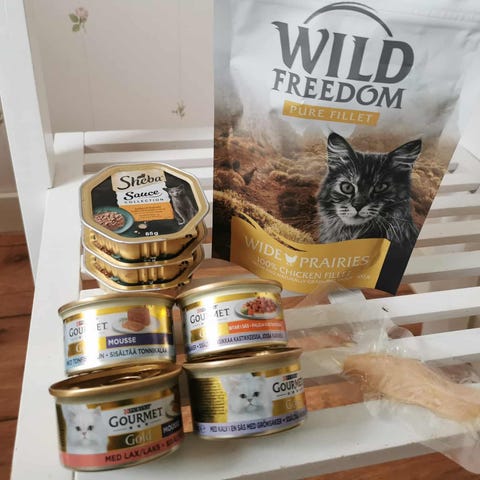 Har tyvärr fått ta bort min katt akut och har en massa mat över. Pengarna går till veterinärkostnader.