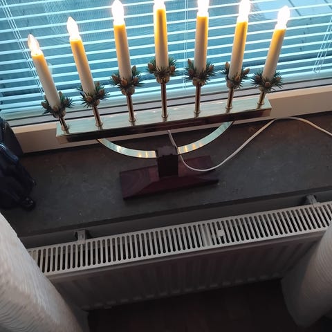 Unik adventsstake i mässing märkt " Stadsmissionens industrihem Stockholm" mått 39 x 9 x 4, kan skickas