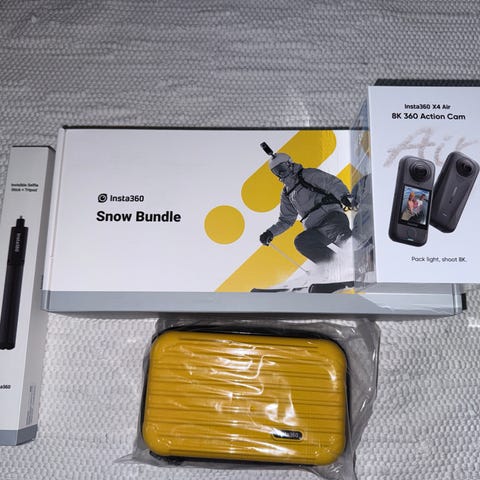 Hej. Hade missöde med min favorit Insta360 när jag snorklade i italien i oktober, den tog in vatten. Tänkte att jag skulle få lite ersättning på försäkringen så jag köpte en helt ny X5. Visade sig att Insta360 ersatte hela kameran och har nu fått en helt ny x3 kamera i plastad förpackning + nytt batteri (deras support är helt super). Står nu med en X5 och en ny X3 och tänker sälja X3 (om jag får tillräckligt betalt) annars behåller jag båda. Det som ingår är det som visas på bilden dvs ny kamera, nytt orginalbatteri, extra laddare för USB-C kabel med två laddplatser, två extra batterier (ej orginal), en orginal 360 invisible selfie stick och en skyddshuva för linserna. Det som saknas är lämpligt minneskort. Tänker att detta kan vara en optimal julklapp för den som vill ha ett bra 360 kamera med nödvändiga tillbehör. Billigaste erbjudande på Prisjakt för bara kameran är per den 14 dec 3 250 kr, nypris för tillbehören uppskattas till ca 800 kr (amazon). Priside är därför 3200 kr, kan prutas något vid snabb och enkel affär. OK att skicka via blocket paket om så önskas och jag gör det omgående. Orginalkvitto finns tillgängligt och kan skickas med i paketet.