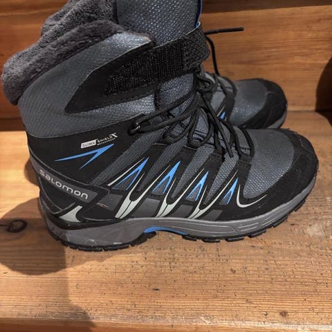 Salomon höst och vinterskor. Innermått ca 21,4 cm. Står att de är vattentäta men de verkar inte hålla för väldigt blöta dagar. Fleecefoder högst upp på skaftet. Har använts sparsamt då vi haft flera skor