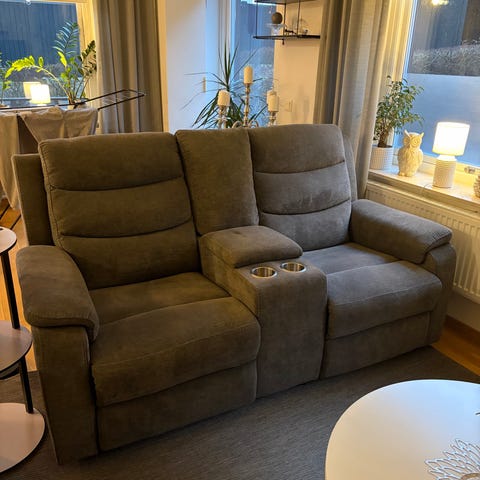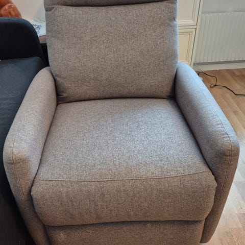 Mycket fin elektrisk recliner Elof med fjärrkontroll. Finns på Mio möblers hemsida. Inköpt 2023 då använd sex månader. Prutat och klart inget sista pris.