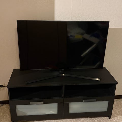 Tyvärr trasig i bakstycket på ena sidan, se bild 3. Kan nog lätt ordnas om man är händig, men det syns inte om tv-bänken står mot en vägg.