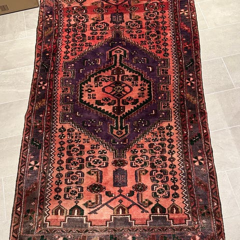 Hamadan, nomad-matta. Vackra mörkröda färger.