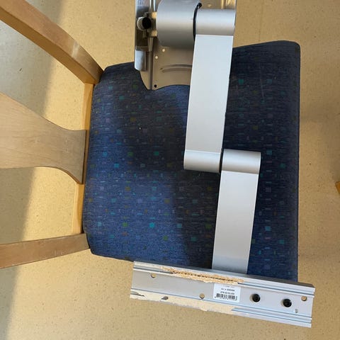 En plastpanel som sitter mot väggen fick en liten spricka i sig när vi monterade ner den. Se bild.