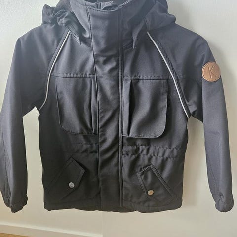 Helt ny kuling barnjacka i blå färg, storlek 110, unisex. Jackan har huva med avtagbar fuskpäls och är designad för att ge komfort och skydd i kyligare väder.