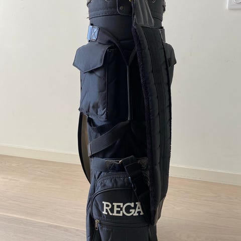 Säljer en svart bag för golf.