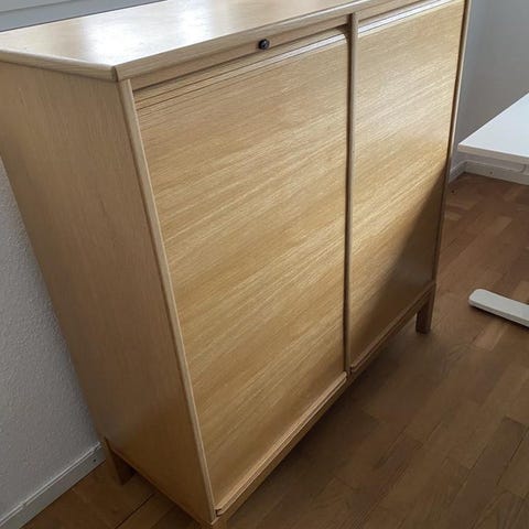 Klock skåp med belysning och nyckel till luckorna.
