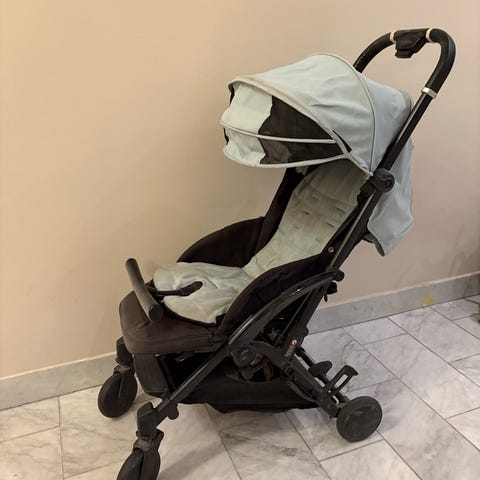 Carena barnvagn i grå färg. Går att fälla ihop och fungerar som handbagage på flyg.