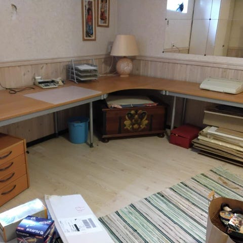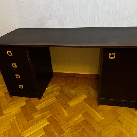 Skrivbord i bra skick. Något enstaka märke. Robust och stabilt.