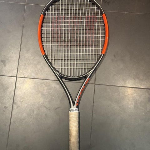 Wilson Pro Staff tennisracket i svart och röd färg. Racketen har ett traditionellt designat huvud och är avsedd för tennisspel.