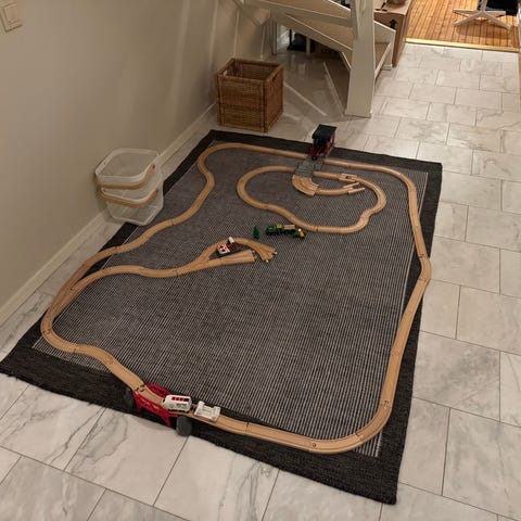 Briotågdelar: tåg, spår, depå, tvätt, garage och berg