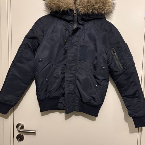 GANT dunjacka i storlek S/M. (160/84A) Jackan är blå och tillverkad av dun, vilket ger isolering och värme. Produkten är avsedd för utomhusbruk och har en huva för extra skydd.