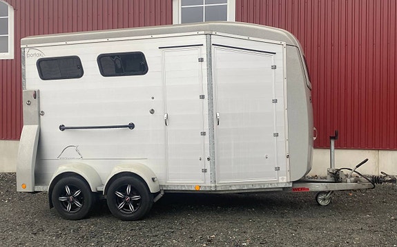 Hästen åker väldigt bekvämt med ca 130 cm inv. bredd jämfört med en standard spilta i två hästars släp som är ca 82 cm bred. Det är bra med bredden och att mellanvägg saknas för man kan ju komma åt hästen lättare i släpet och ta av/på utrustning Detta släp har även en trevlig sadelkammare så du slipper ha utrustningen i bilen.