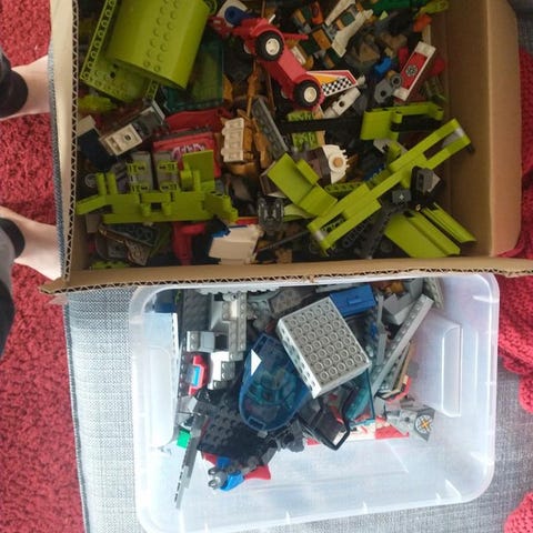 Förvaringslådorna ingår, samt instruktionsböcker till samtliga set (se bilder).