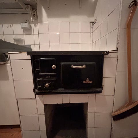 Vedspis i metall med två luckor för ved och askhantering. Utrustad med rökrörsanslutning upptill. Färg: grå. Passar för uppvärmning i mindre utrymmen.