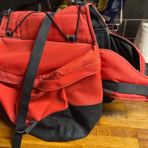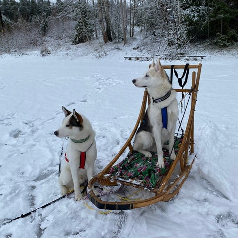 Minimal använd hundsläde, säckarna som nya och snöankare knappt använda