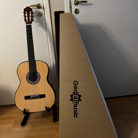 Spruckit något i kroppen men inget som påverkar ljudet. Case ingår. Perfekt julklapp