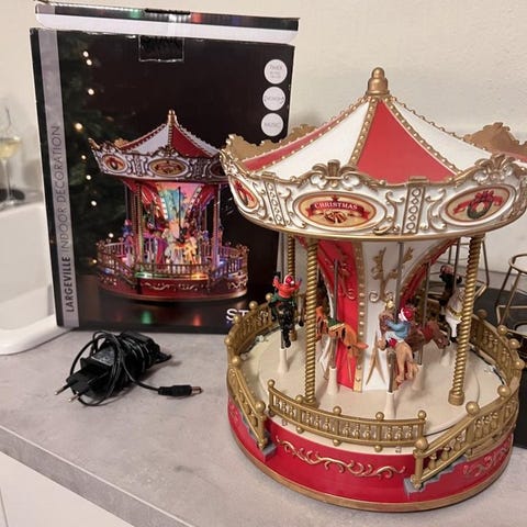 Vacker och stämningsfull vit julkyrka med inbyggd LED-belysning, varmt vitt sken genom fönstren och kan även spela musik ("Silent Night"). Utrustad med en praktisk timerfunktion (6h på / 18h av).