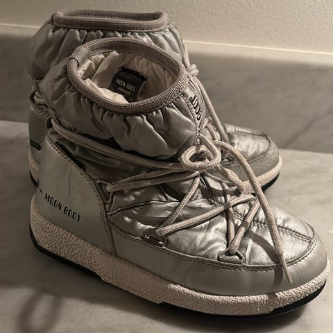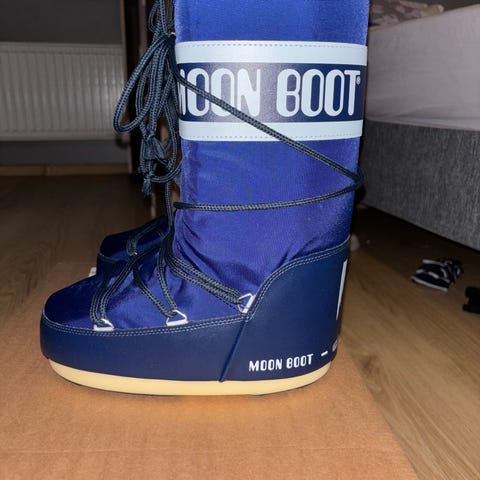 Hej! Har ett par väldigt fina moon boots i storlek 42/44! Endast använda 1 vecka, finns en missfärgning på ena skon som ni ser på en av bilderna, knappt synbart men det finns iaf där!