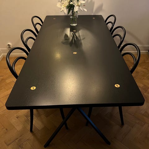 Passar utmärkt som matbord, arbetsbord eller konferensbord – både i hemmet och i professionella miljöer.