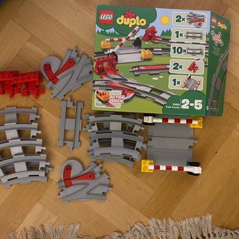 LEGO City tågset med flera fordon och tillbehör. Setet inkluderar tåg, räls, kran och olika fordon i olika färger. Passar för barn och samlare som är intresserade av tågmiljöer och stadsliv.
