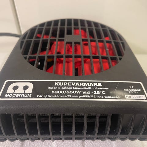 Calix kupevärmare modell Slim Line 1400. 230V ~ 50Hz, 1400W. Tillverkad i Sverige.