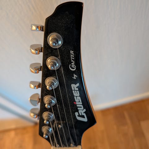 Eastone Elgitarr i röd färg med vit pickguard och sex strängar. Levereras med en Kustom förstärkare med flera reglage för ljudjustering. Gitarren har en träfärgad huvudsaklig hals med sex stämskruvar. Förstärkaren är svart med ett metallgaller på framsidan och bärhandtag på toppen.