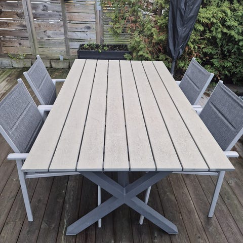 Vi säljer nu vårt utebord med plats för 3 stolar på vardera långsida.