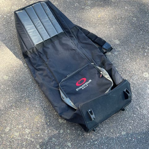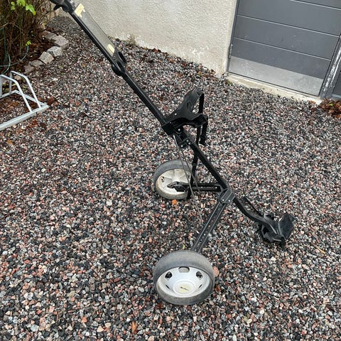 Prestige Golfvagn i svart färg. Utrustad med två hjul och handtag för enkel manövrering. Enkel att fälla ihop med paraplyhållare.