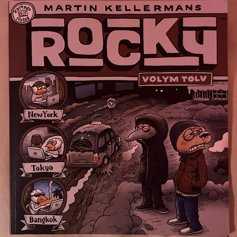 Säljer ett exemplar av Rocky Volym 1,2 & 4 andra, tredje och fjärde upplagan av Martin Kellerman. Hysteriskt rolig läsning där Rocky brottas med vardagsproblem, relationer och livet i Stockholm. Perfekt att ha liggande framme för gäster eller som underhållande "dassbok".