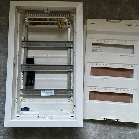 Nytt o oöppnad: ABB mediakapsling för infällt montage komplett med AC uttag o patchpanel m Wifi dörr.