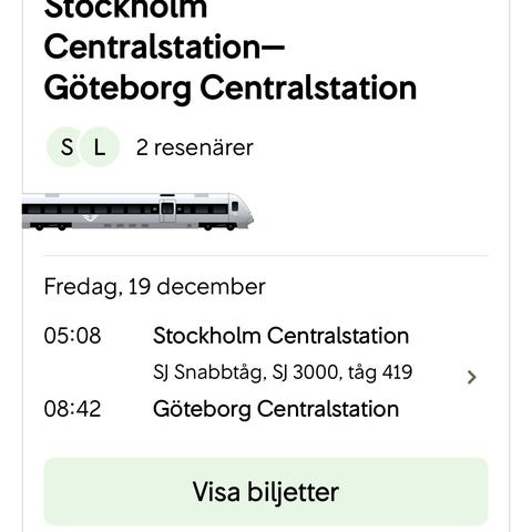 SJ-biljett kl 14.28 Stockholm-Alvesta. Inköpt för 705 kronor (se kvitto). Säljes för 400 kronor.