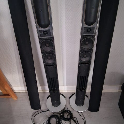 Bang & Olufsen hörlurar. Svart färg med justerbar huvudbygel och inbyggd mikrofon. Trådbundna med ljudkabel och medföljande väska för förvaring.