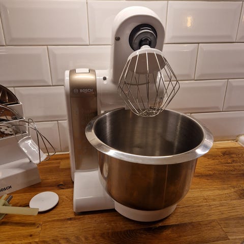 Bosch köksmaskin vit med rostfri bunke och visptillbehör