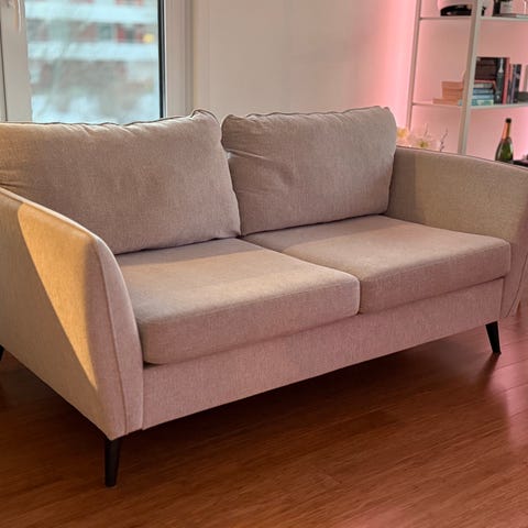 Två sits soffa från mio mörk grå säljes pga flytt, snabb affär prioriteras!