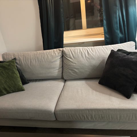 Perfekt till pingisrummet eller andra sociala ytor. Armstöden är nötta i kanterna men soffan är skön att sitta i!