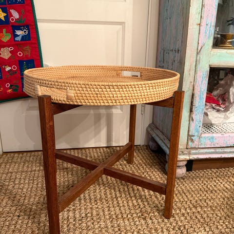Bord med en rottinghylla i mycket fint skick. Passar som vardagsrumsbord eller större sidobord.