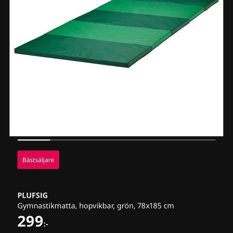 Ikea gymnastikmatta "plufsig" 78x185 cm. Sparsamt använd, bra skick.