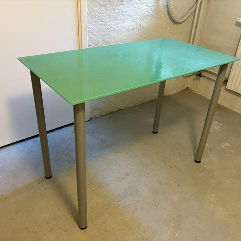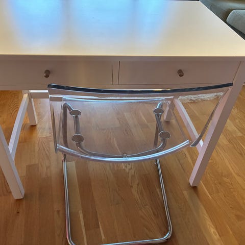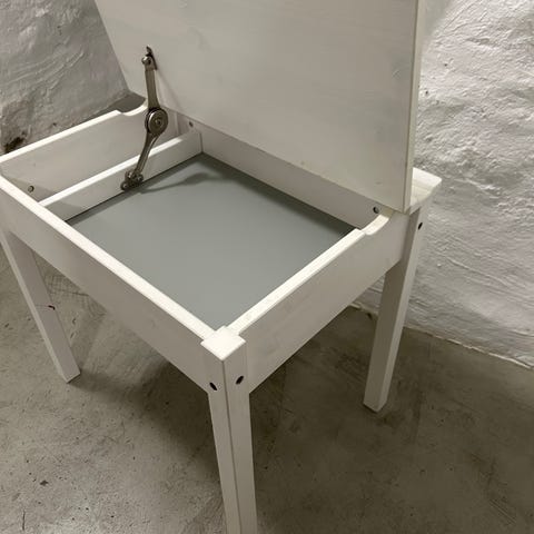 Litet blank-kvitt skrivbord. Synligt slitage ,se bild