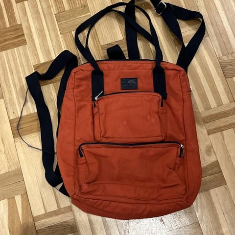 Beige ryggsäck från Gaston Luga med justerbara axelremmar och ett fack med dragkedja på framsidan. Väskan har ett rymligt huvudfack med plats för exempelvis en dator eller böcker.