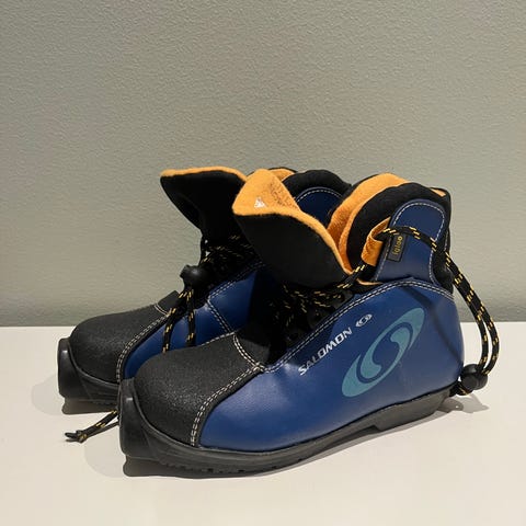 Längskidor, pjäxor och stavar. Strl 33 på pjäxorna
