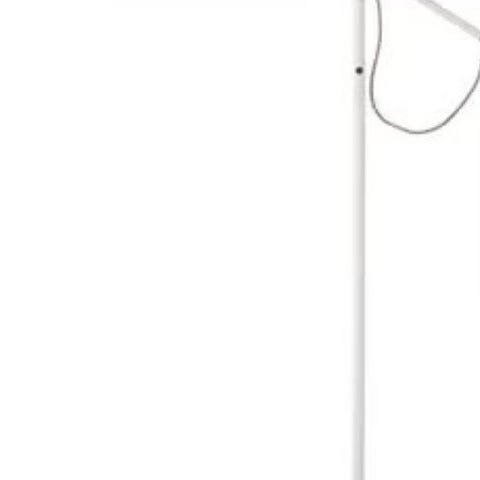 Stilren off white golvlampa med mässingsdetaljer och brukstålig textilsladd. Sparsamt använd, men har en och annan liten repa på foten.