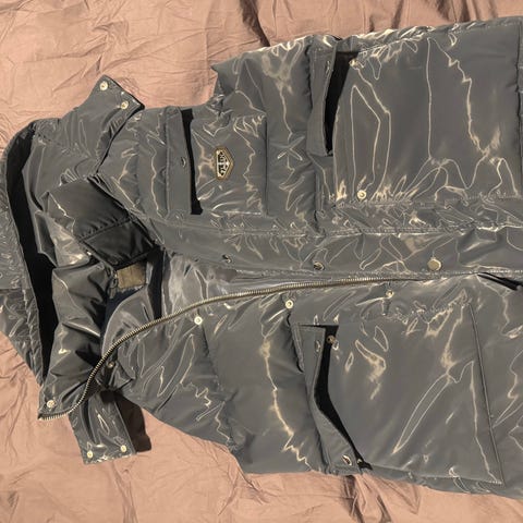 First Slope herrjacka i storlek XL och grön färg. Jackan är avsedd för män och har en vadderad design med dragkedja och knappar framtill. Materialet är anpassat för att ge värme och komfort vid kallare väder.